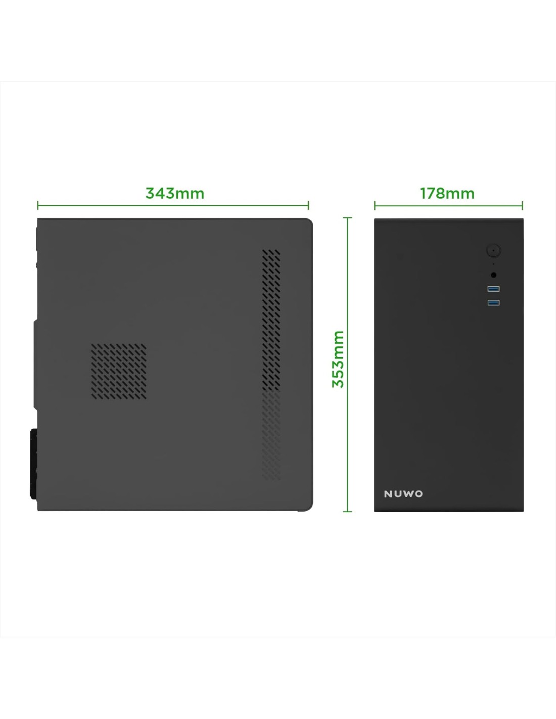 Il case compatto Nuwo EGUERA, dal design elegante e minimalista, è caratterizzato da una solida struttura metallica di 0.6MM SPCC, che garantisce una protezione continua e una solida sicurezza per il sistema.